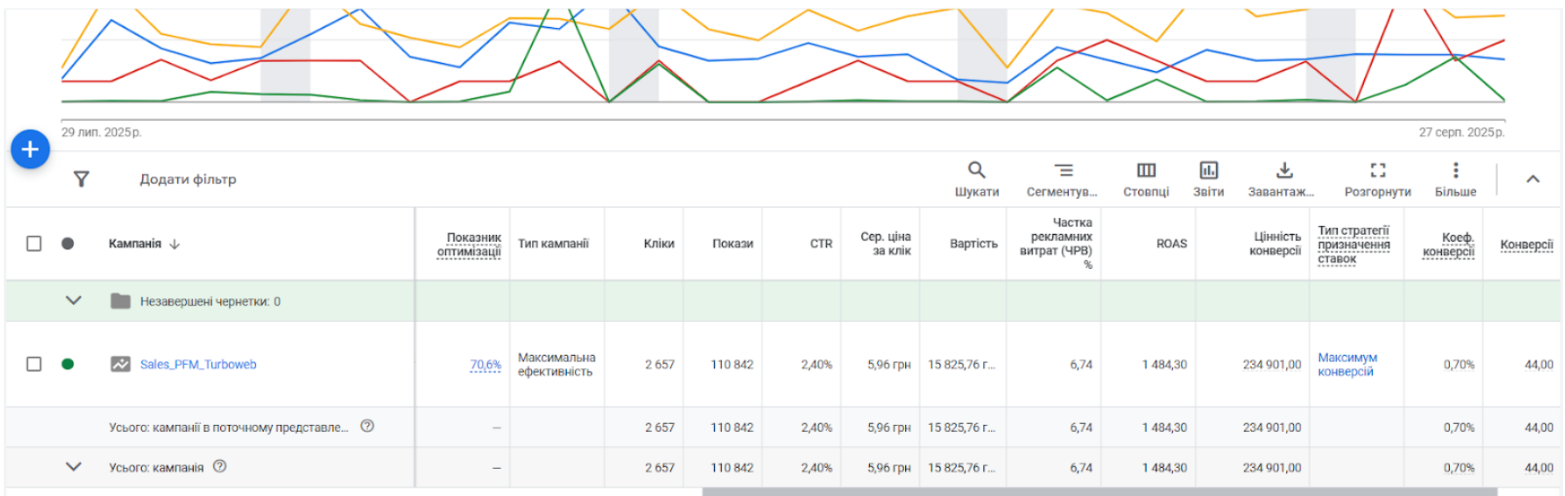 Google намагається отримати максимум конверсій у межах бюджету. Підходить для тестових кампаній або коли CPA ще не визначений.