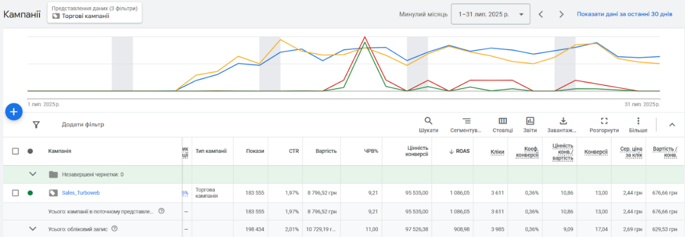 Умова: потрібне налаштування цінності конверсій (Revenue tracking).