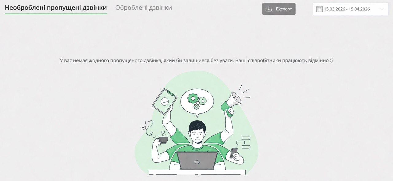 Якщо ви власник магазину або маєте старшого менеджера, який керує кол-центром чи відділом продажів, візьміть собі за звичку на завершення кожного робочого дня перевіряти звіт про необроблені пропущені дзвінки. Він має бути порожнім.